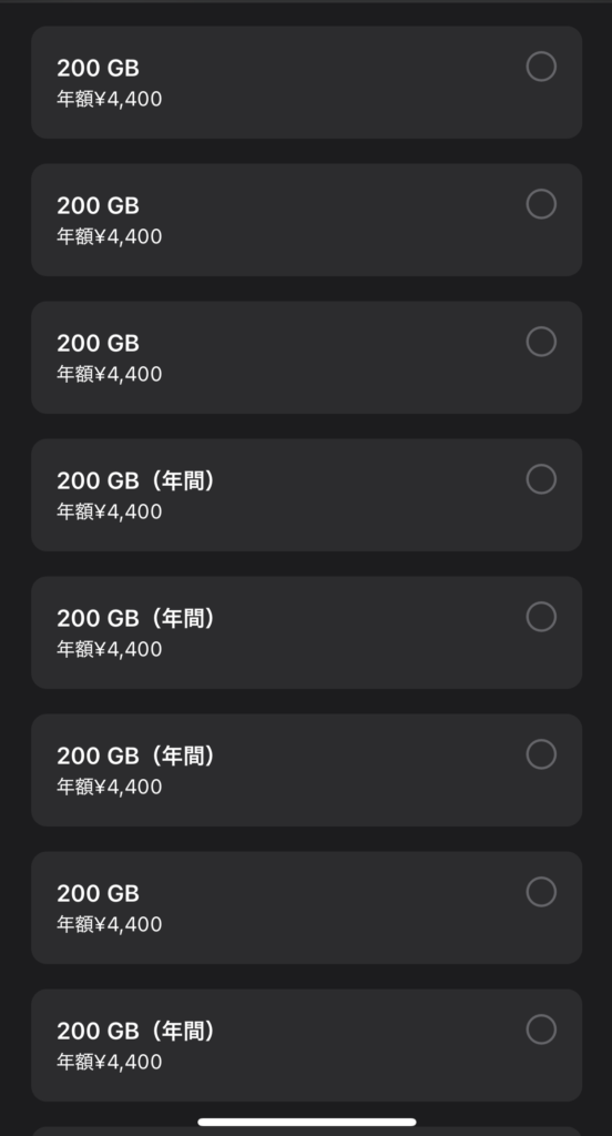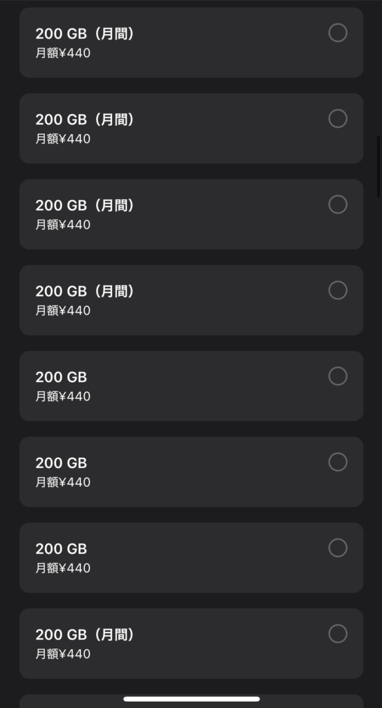 - 同じ容量プランが複数表示される